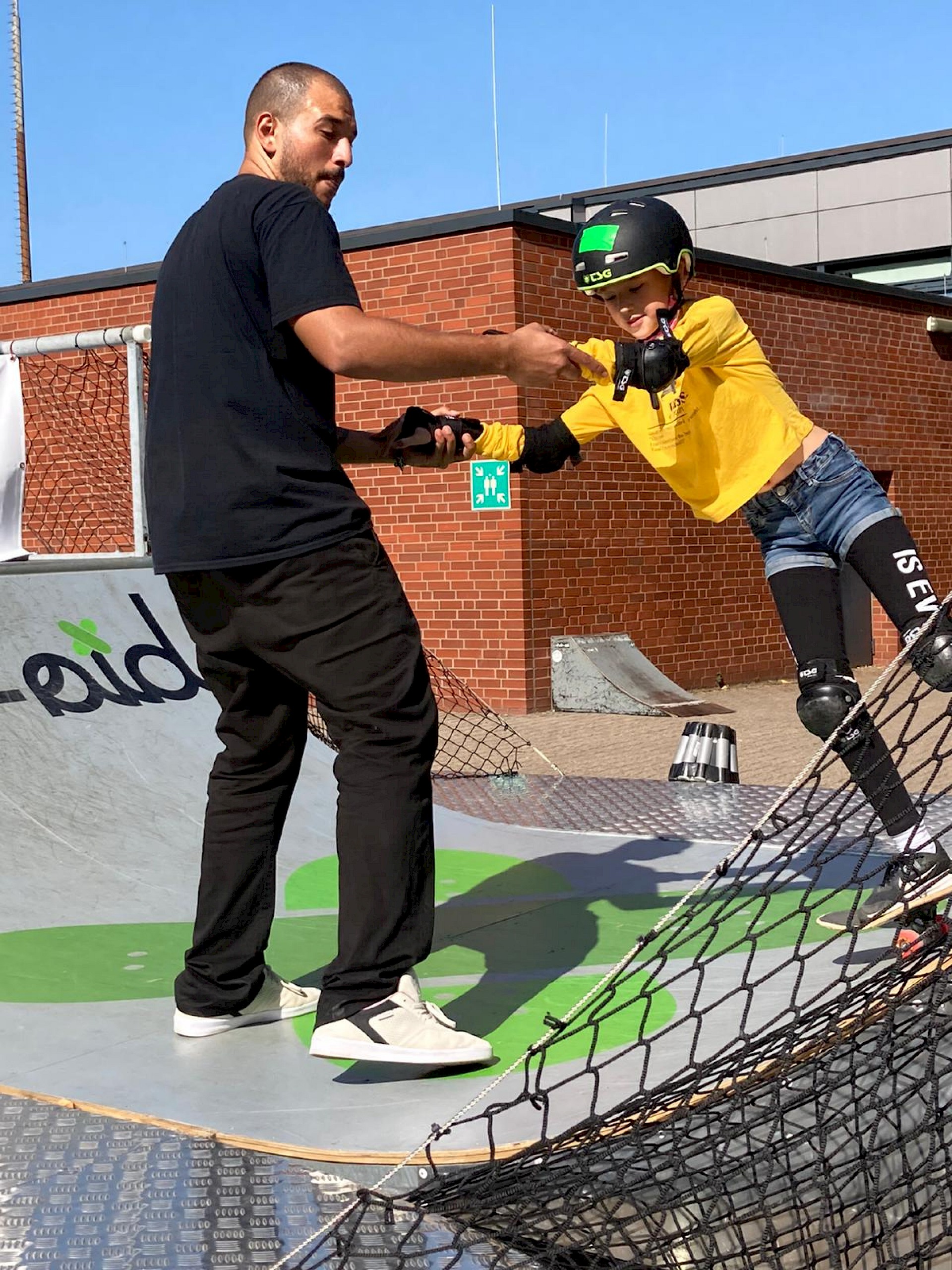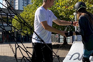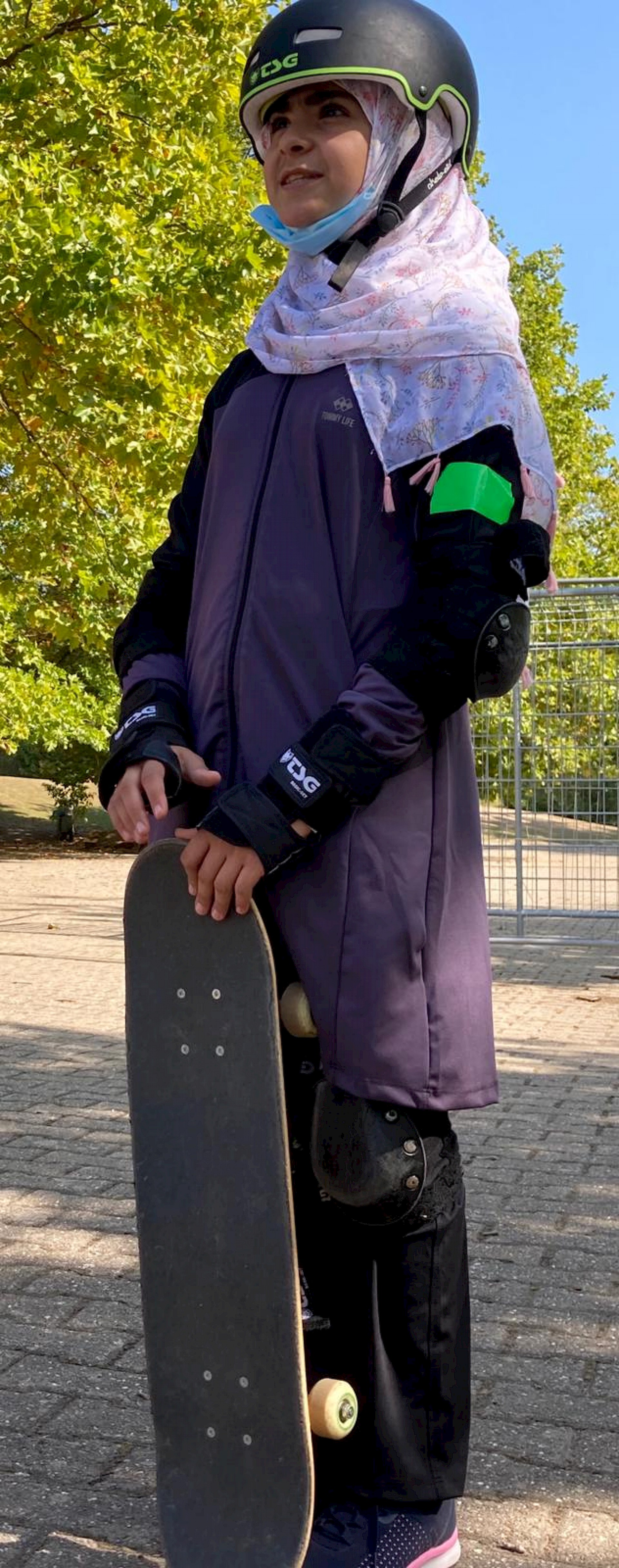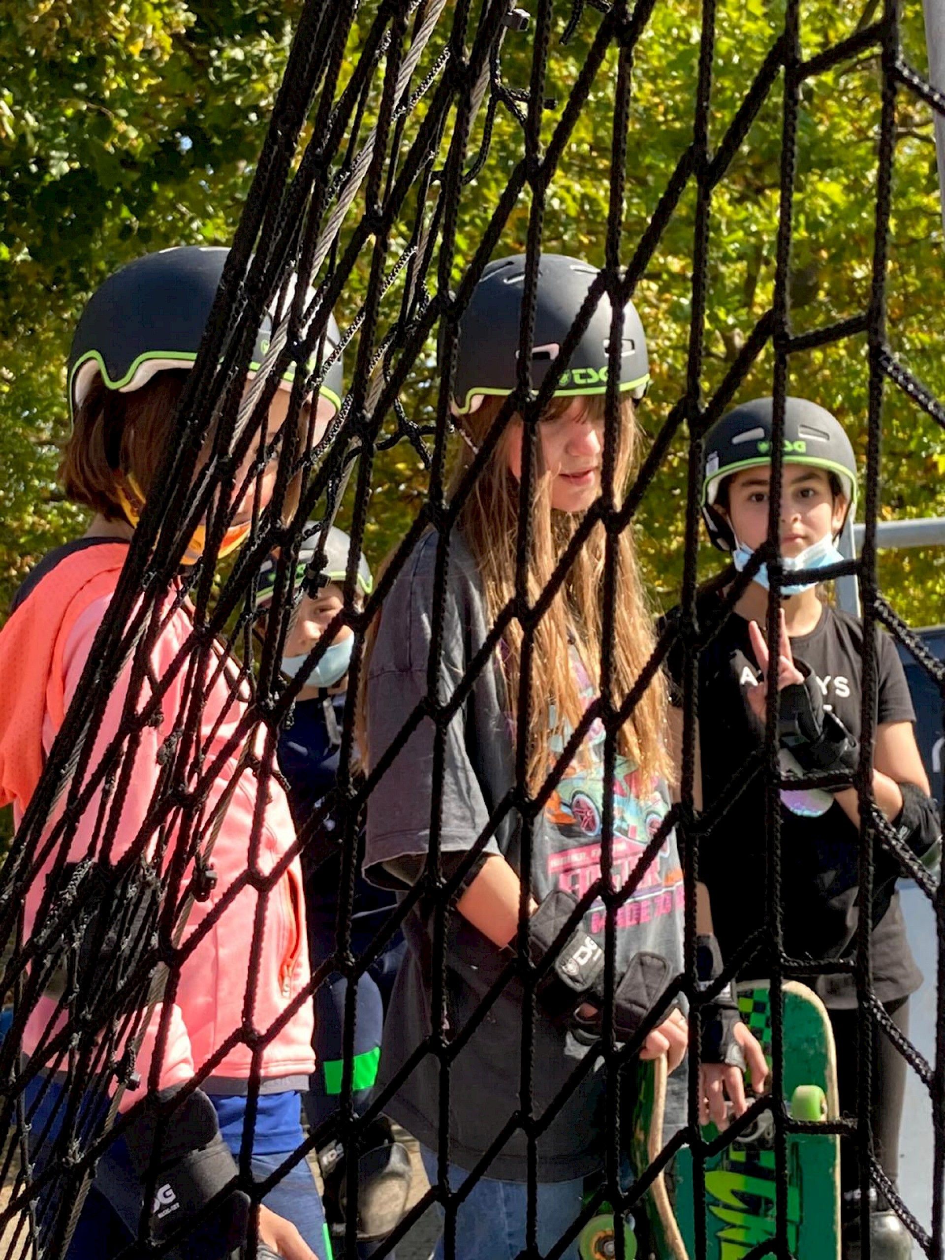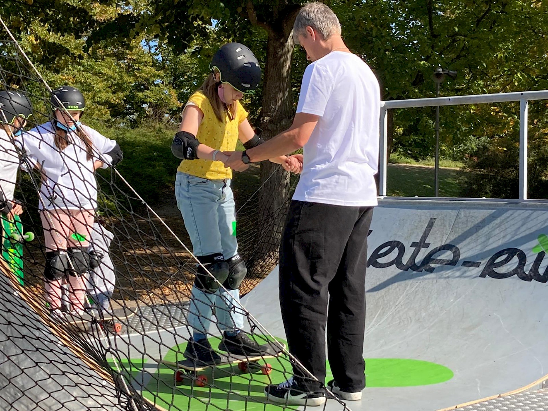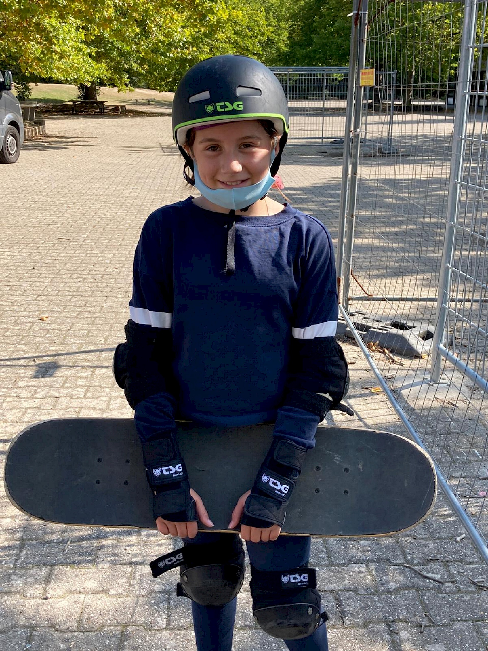 On 19.09.2020 we were in Cologne at the Lise-Meitner-Comprehensive School for one of our free GIRLS SKATE! workshops. Of course our mobile minicamp, obstacles, skateboards, safety gear, helmets and our skate-aid coaches were there too.