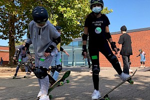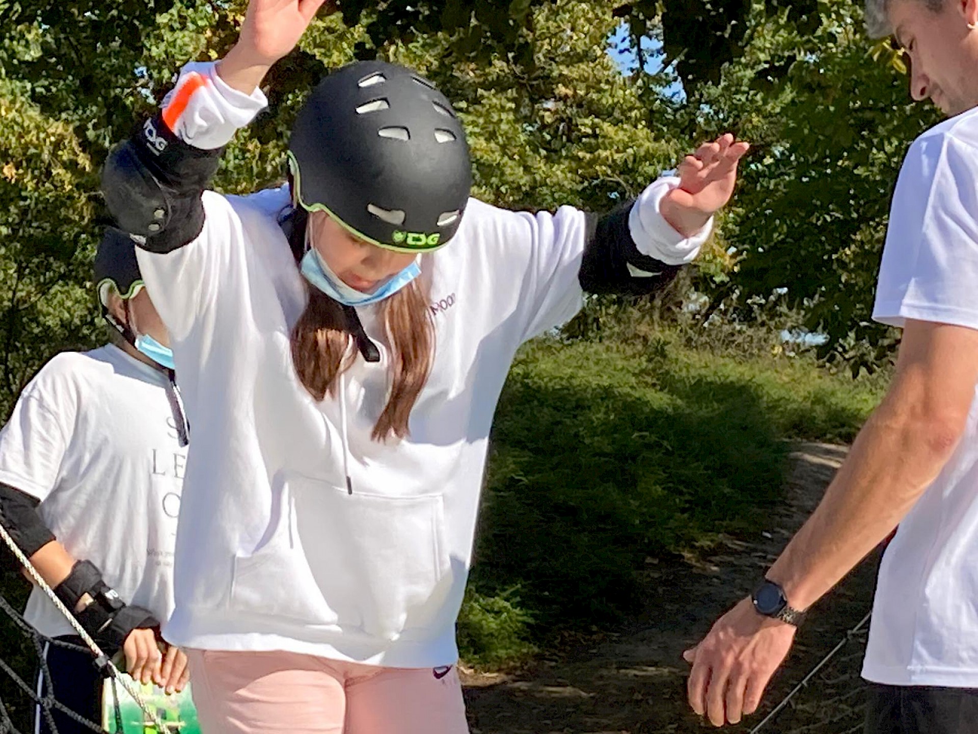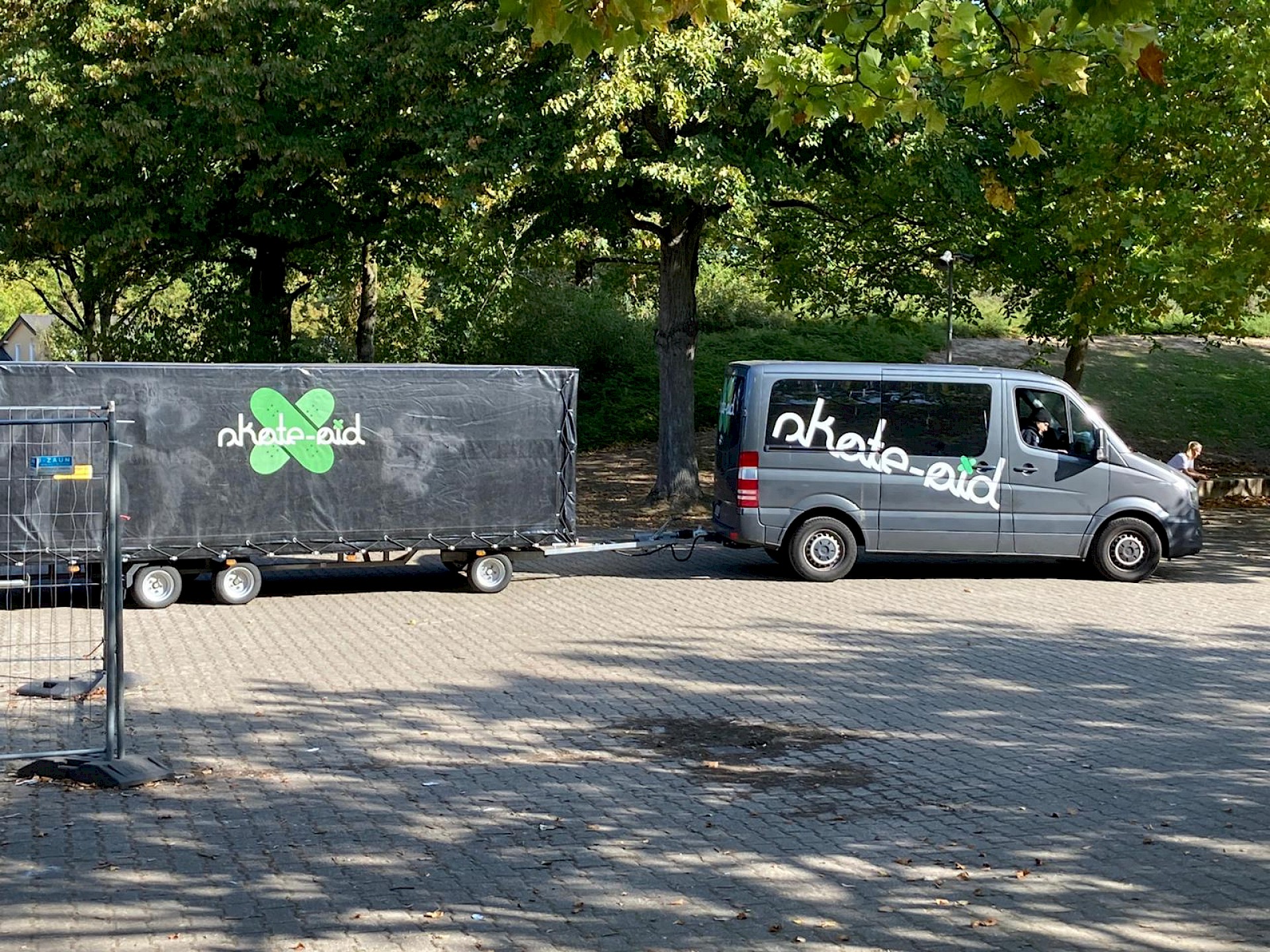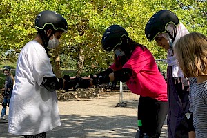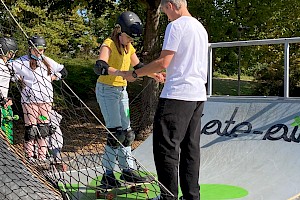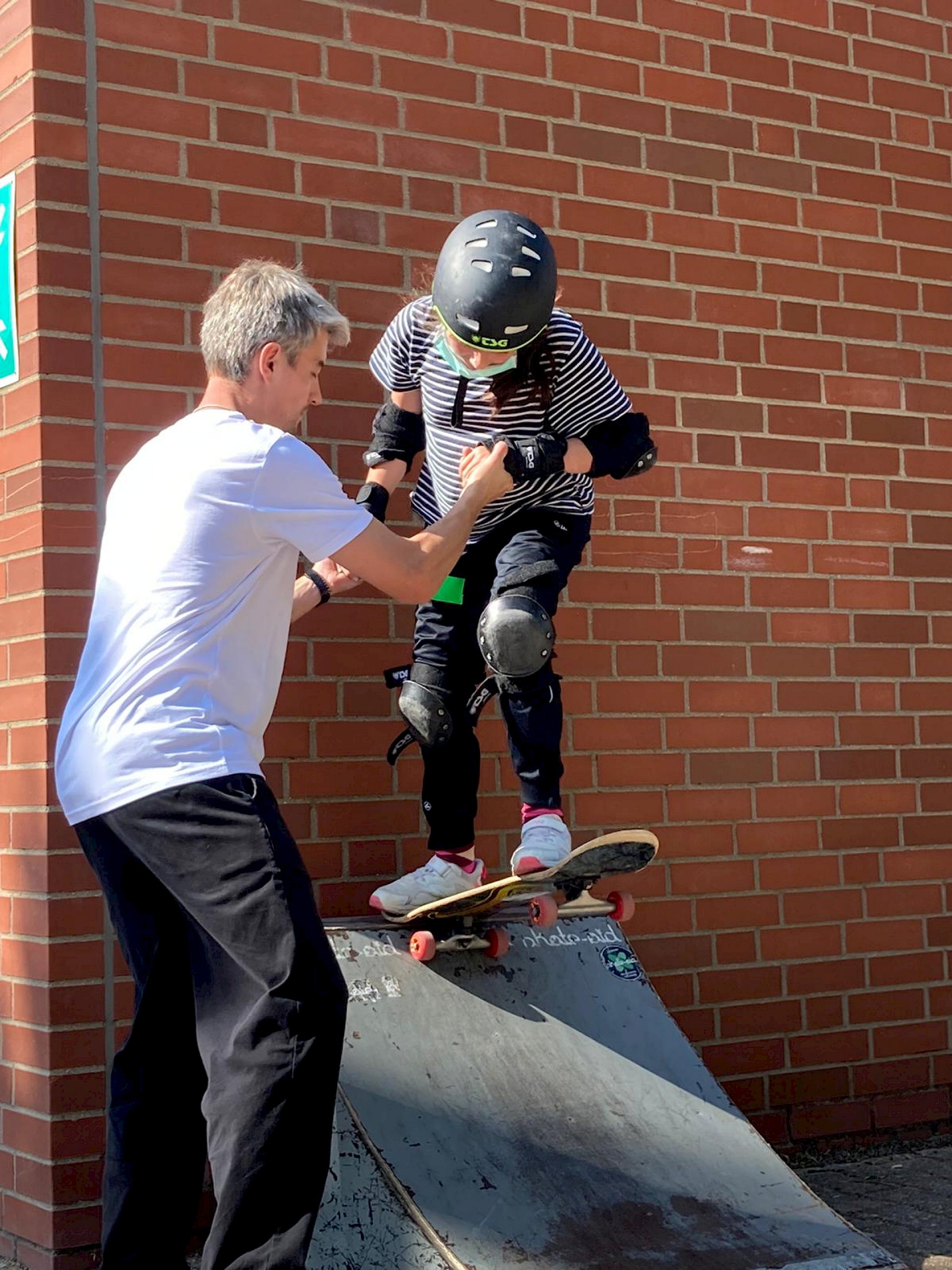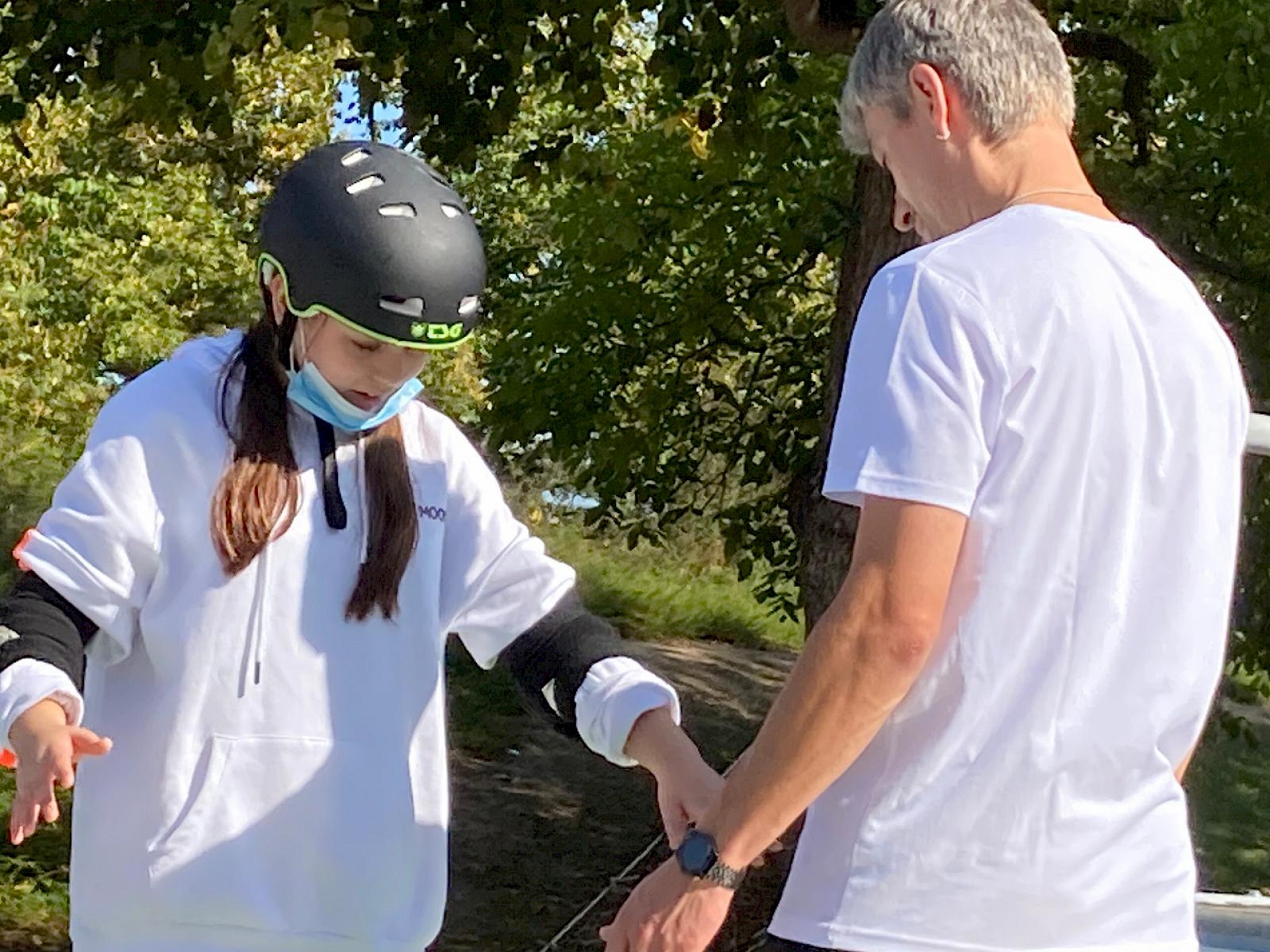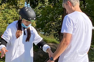 On 19.09.2020 we were in Cologne at the Lise-Meitner-Comprehensive School for one of our free GIRLS SKATE! workshops. Of course our mobile minicamp, obstacles, skateboards, safety gear, helmets and our skate-aid coaches were there too.