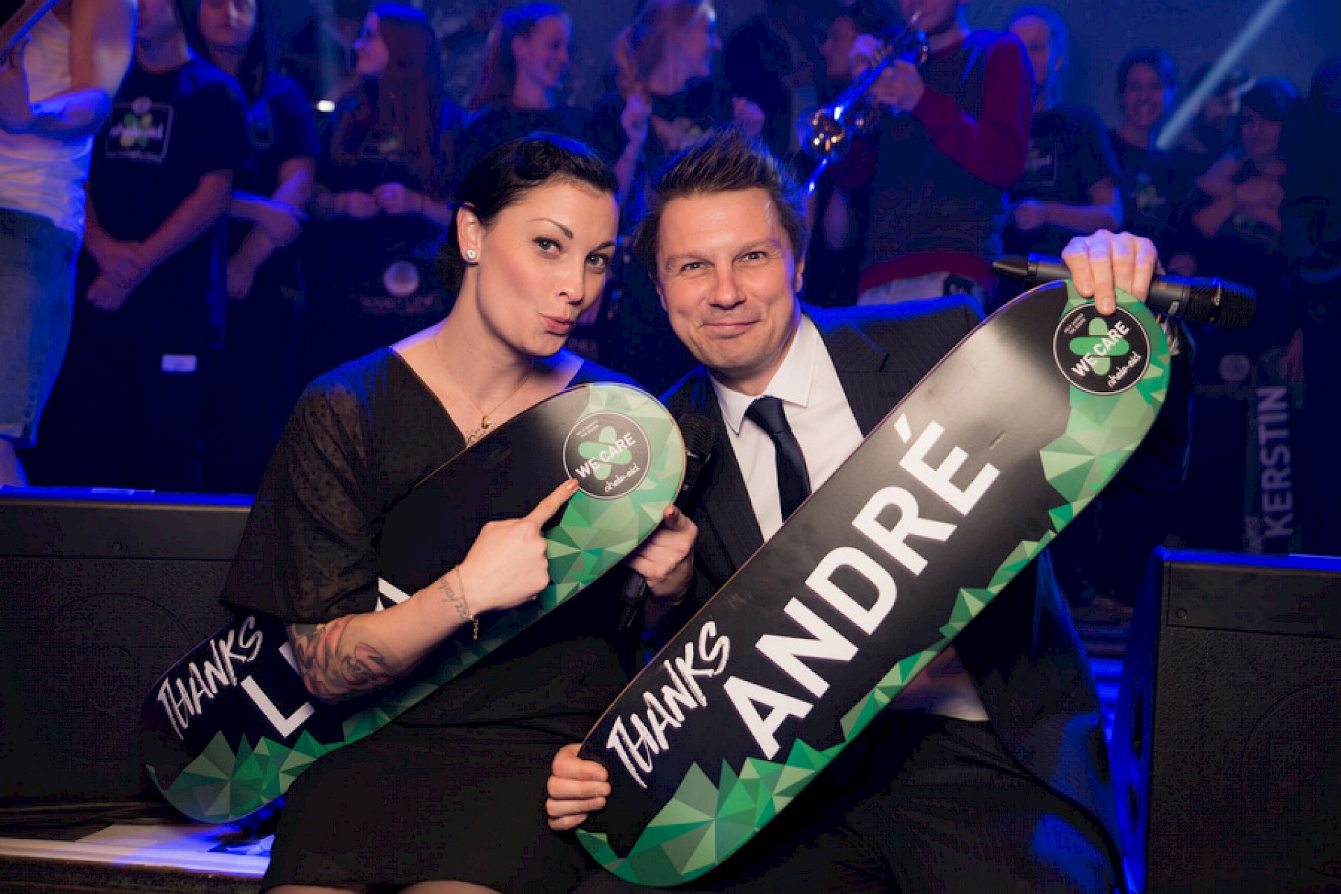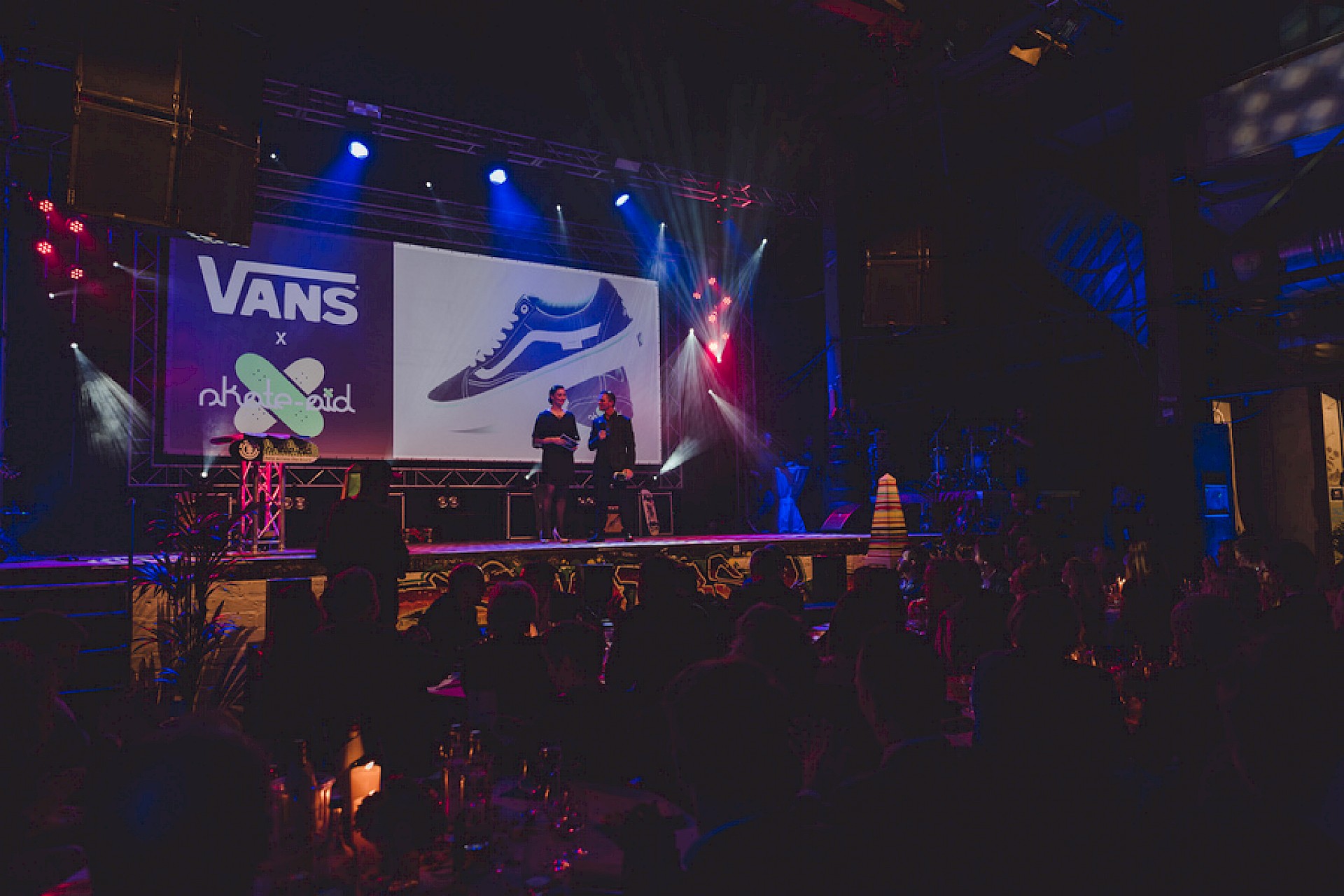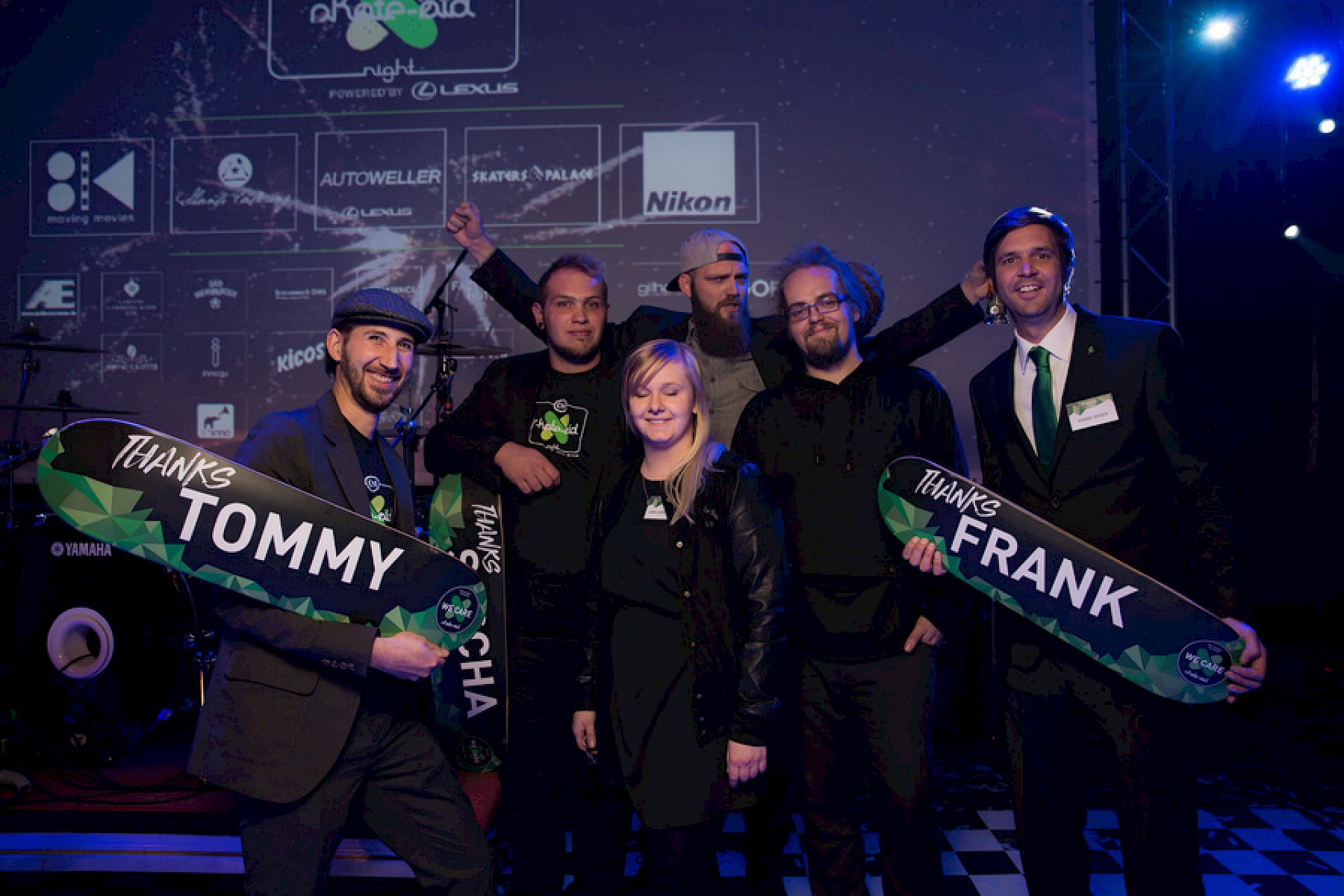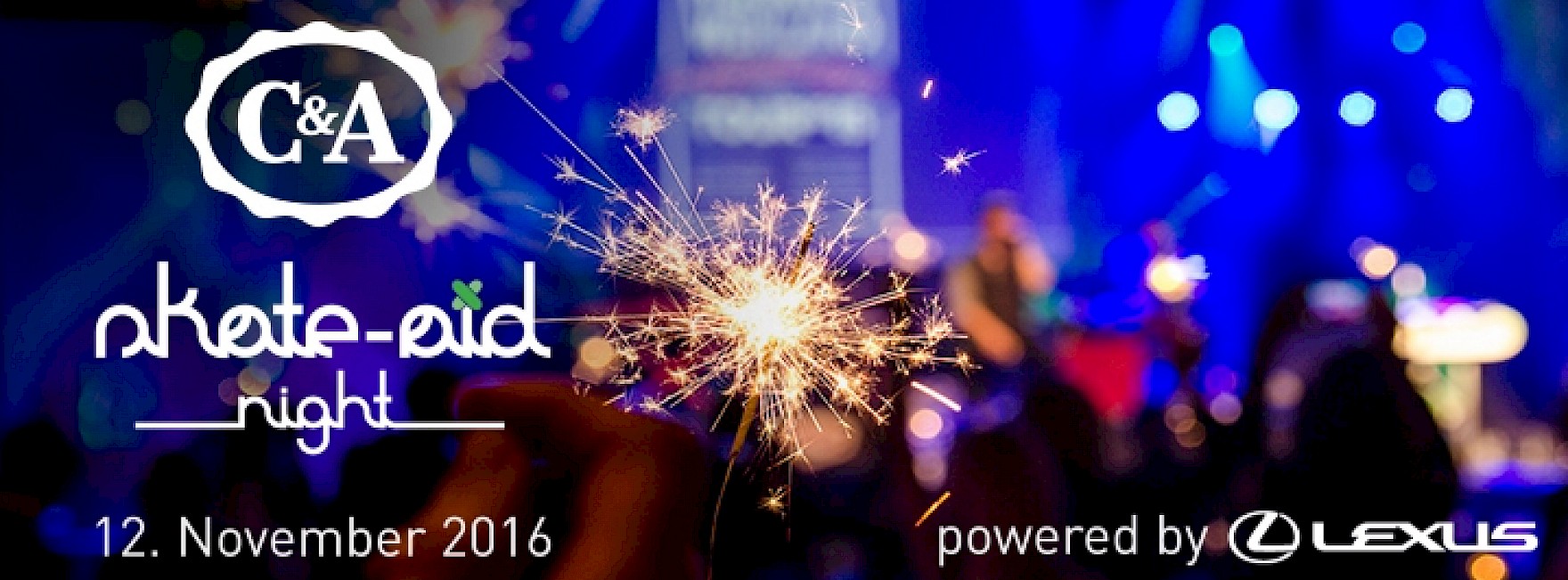 Am 12. November fand im Skaters Palace in Münster die C&A skate-aid-night 2016 powered by Lexus statt. Bereits zum 11. Mal lud Gastgeber Titus Dittmann, Skateboard-Pionier und skate- aid Gründer, zu dem Charity-Event ein. Rund 265 geladene Gäste, unter ihnen Prominente wie Schauspieler Wotan Wilke Möhring, Formel 1 Legende Jochen Mass und Comedian Simon Gosejohann, wurden von André Gatzke und Lina van de Mars charmant durch einen unterhaltsamen und bewegenden Abend geführt. Am Ende kam die stolze Summe von rund 57.000 Euro für die weltweiten skate-aid Projekte zusammen. Seit 2006 steht der jährliche Event in dieser einzigartigen Location für „Feiern und Fördern“.